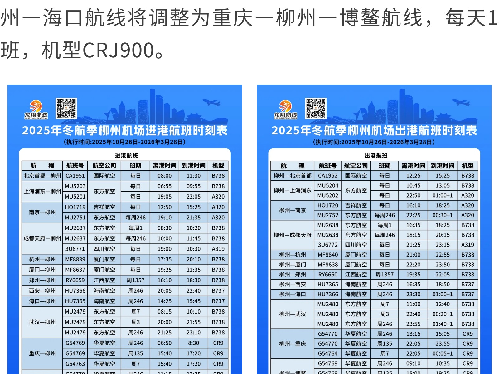 柳州又新增一航點(diǎn)!集團(tuán)旗下龍翔航線公司冬春航季持續(xù)織密航線網(wǎng)絡(luò) 發(fā)布時(shí)間:2025年10月17日 10時(shí)來(lái)源:本站原創(chuàng)瀏覽:28 人次