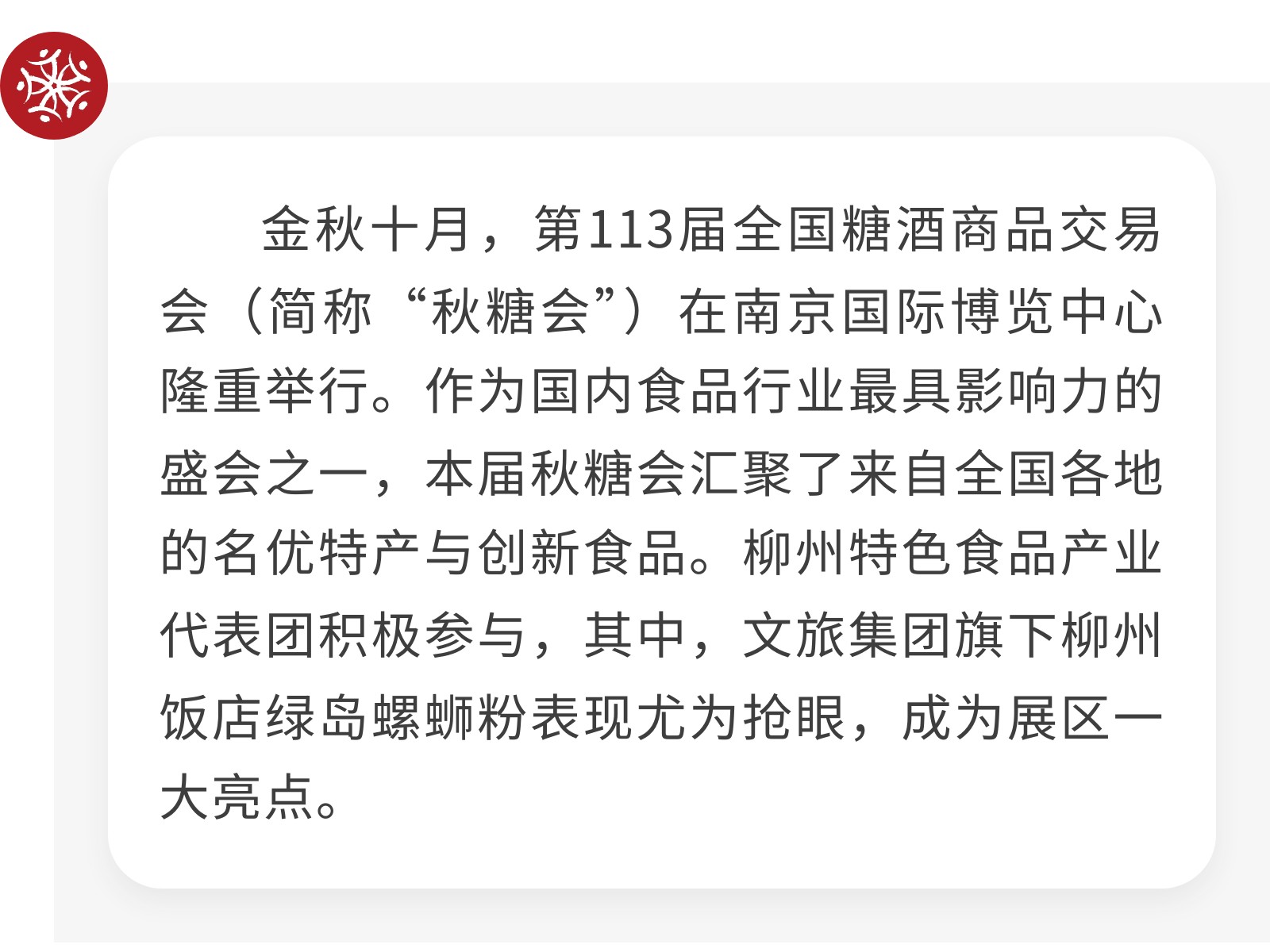 【一碗螺螄粉,香動秋糖會】文旅集團柳州飯店綠島螺螄粉用實力“圈粉” 發(fā)布時間:2025年10月22日 10時來源:本站原創(chuàng)瀏覽:25 人次