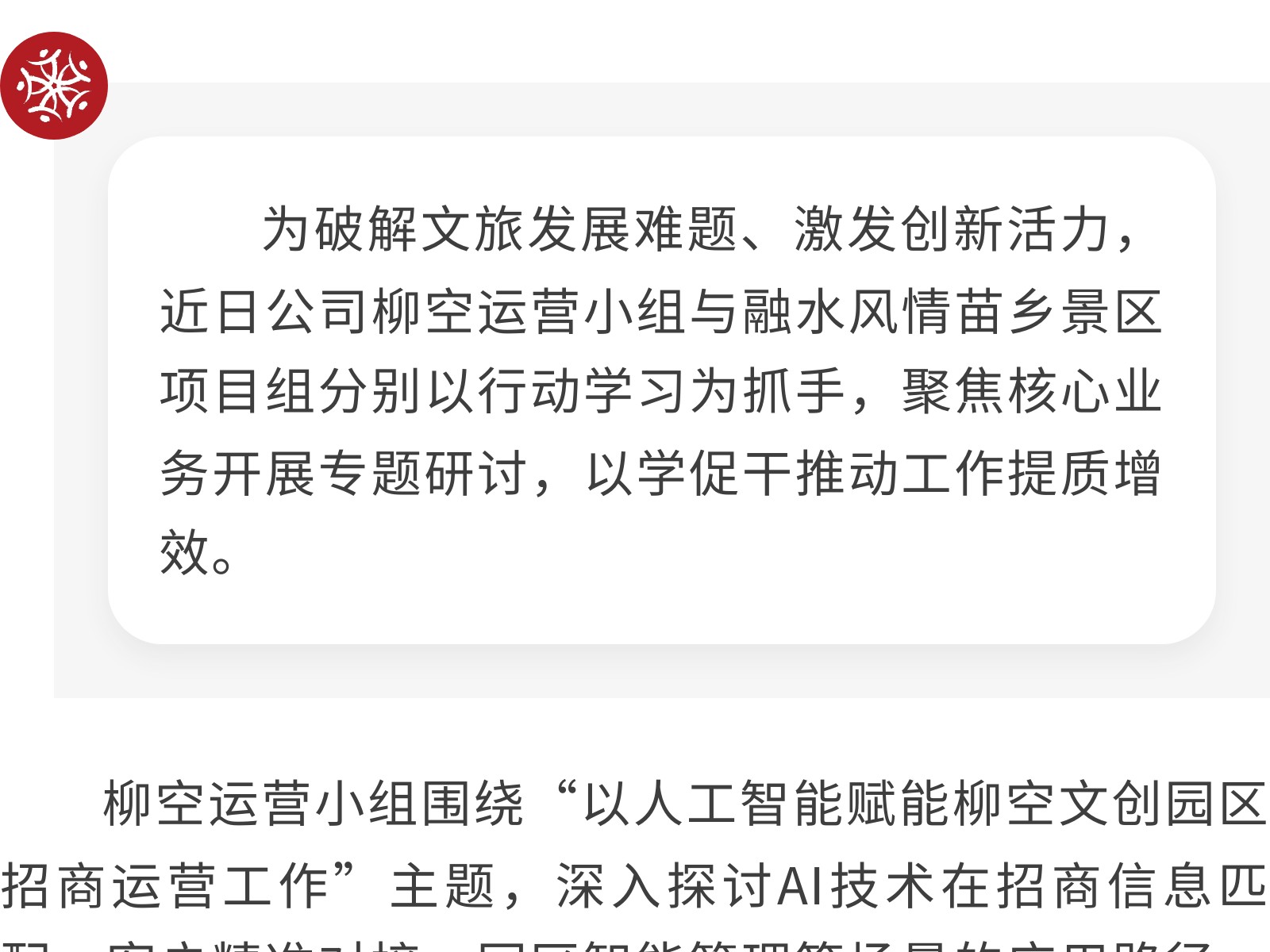 【學(xué)思踐悟強(qiáng)本領(lǐng),實干擔(dān)當(dāng)促發(fā)展】柳州文旅集團(tuán)文發(fā)公司兩大項目組開展行動學(xué)習(xí)活動 發(fā)布時間:2025年11月28日 09時來源:本站原創(chuàng)瀏覽:23 人次