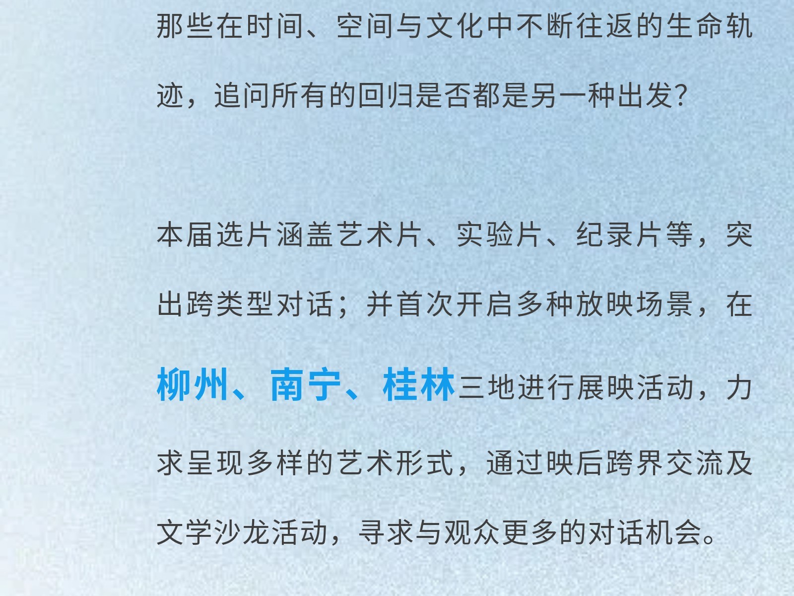 文旅集團(tuán)電影公司第三屆木圭青年電影展啟幕:開(kāi)往未來(lái)的船,在此“洄游” 發(fā)布時(shí)間:2025年12月03日 10時(shí)來(lái)源:本站原創(chuàng)瀏覽:9 人次