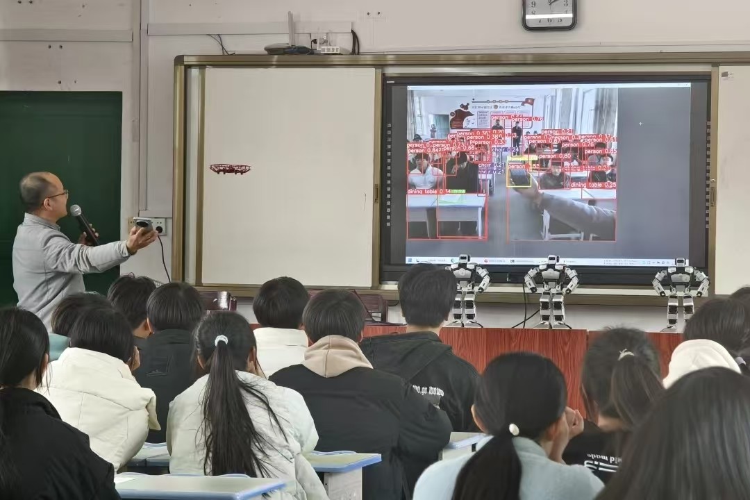 在融水和睦鎮(zhèn)初級中學(xué)的教室里,一場別開生面的科普之旅正熱烈上演。第一課《身邊的人工智能》,趙子航老師用生動(dòng)的語言,將AI基礎(chǔ)概念娓娓道來,從無人機(jī)的起飛到精準(zhǔn)降落,每一個(gè)動(dòng)作背后都蘊(yùn)含著AI的智慧。同學(xué)們的好奇心被徹底點(diǎn)燃,他們踴躍提問,趙老師耐心解答,現(xiàn)場洋溢著探索的激情與求知的渴望。