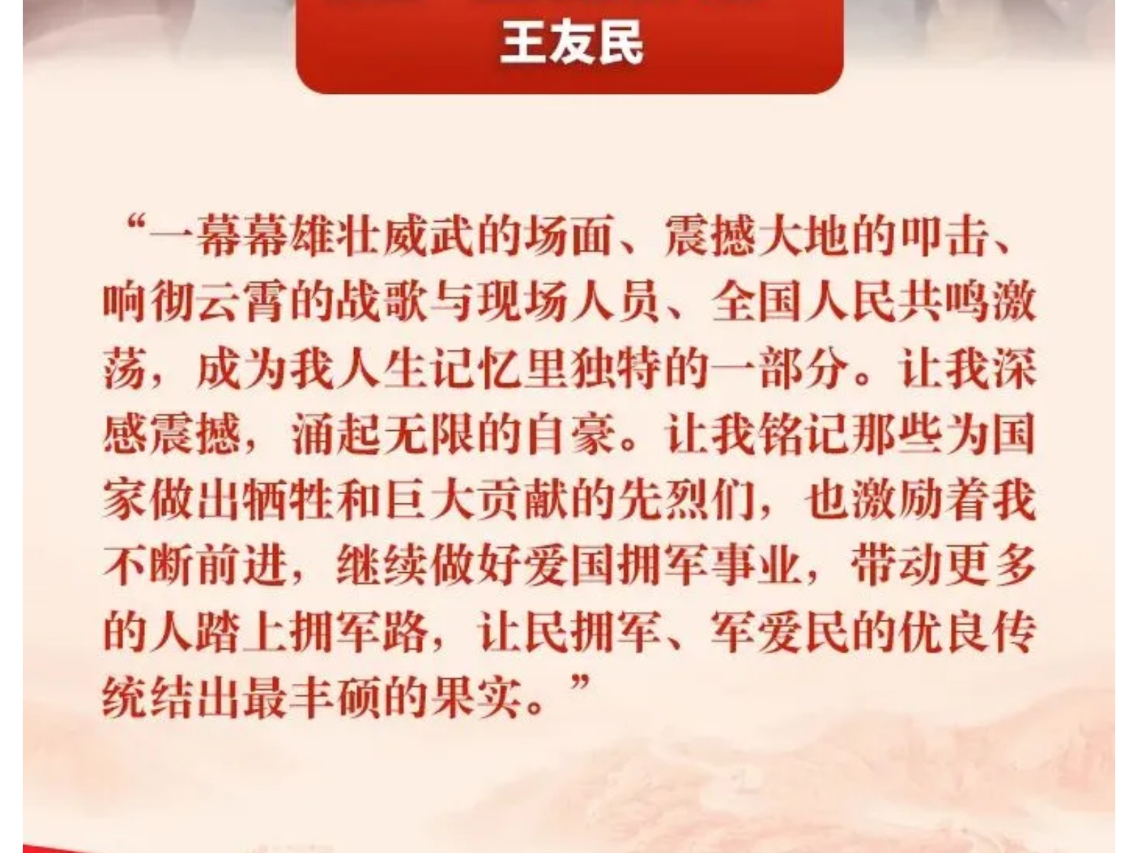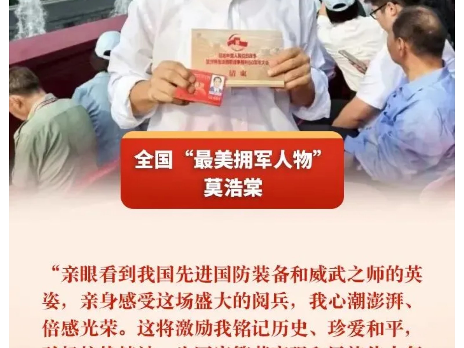 【最美擁軍人物】九三閱兵觀禮臺(tái)上的雙擁身影,他們是誰(shuí)? 發(fā)布時(shí)間:2025年09月19日 10時(shí)來(lái)源:本站原創(chuàng)瀏覽:111 人次