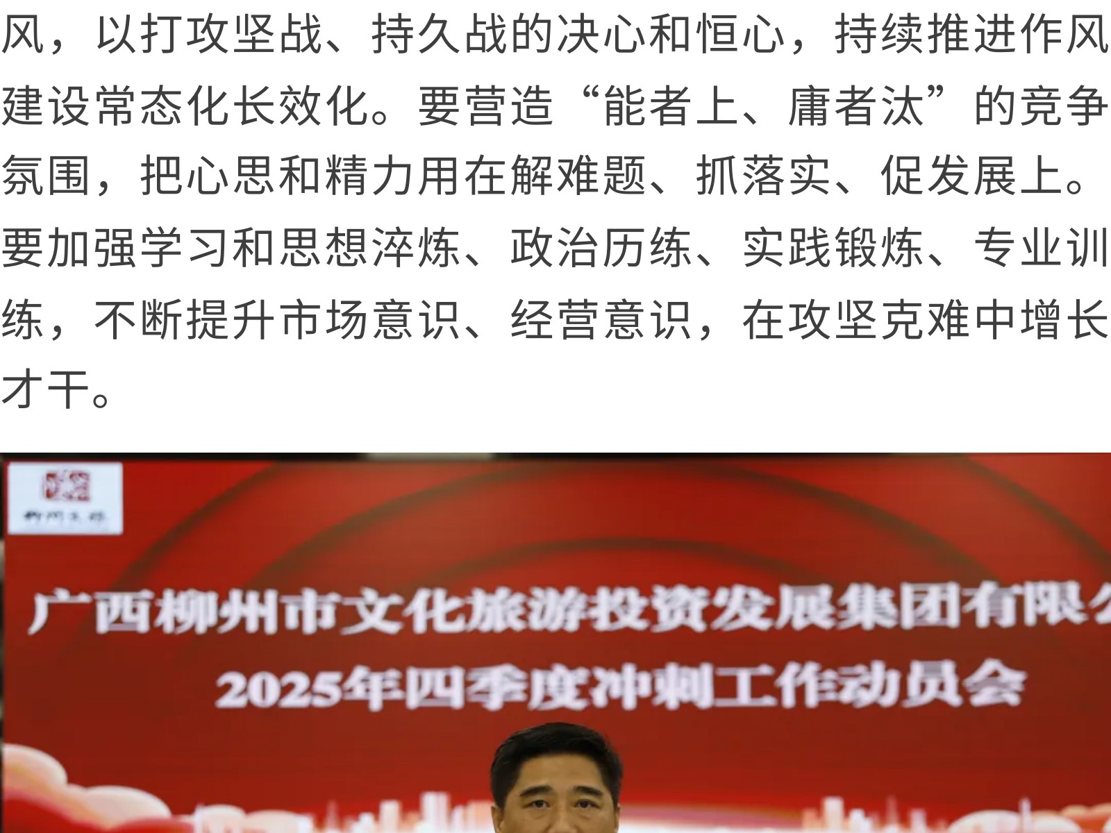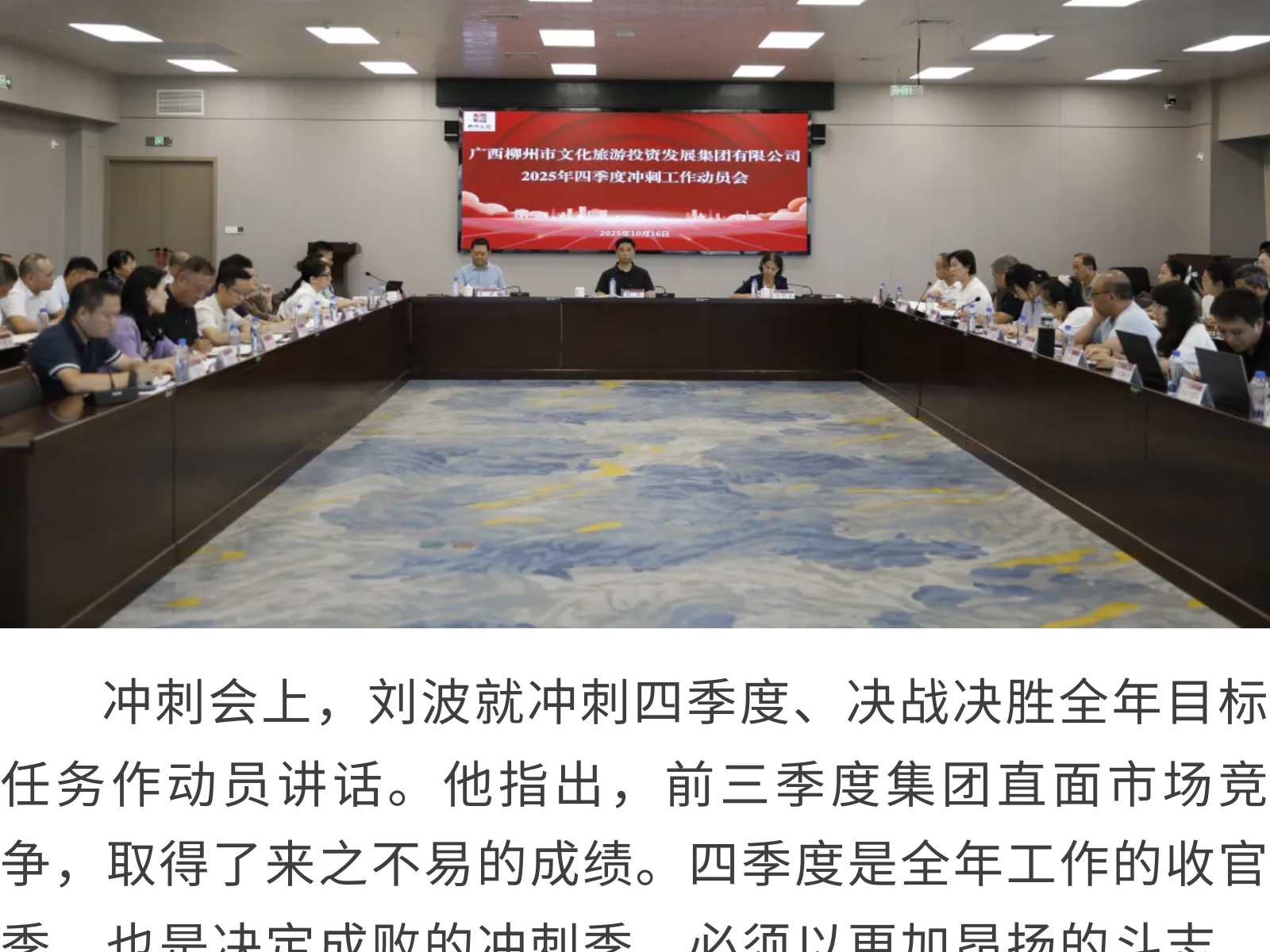 文旅集團(tuán)召開(kāi)四季度沖刺工作動(dòng)員會(huì),決戰(zhàn)決勝全年目標(biāo)任務(wù) 發(fā)布時(shí)間:2025年10月17日 10時(shí)來(lái)源:本站原創(chuàng)瀏覽:16 人次