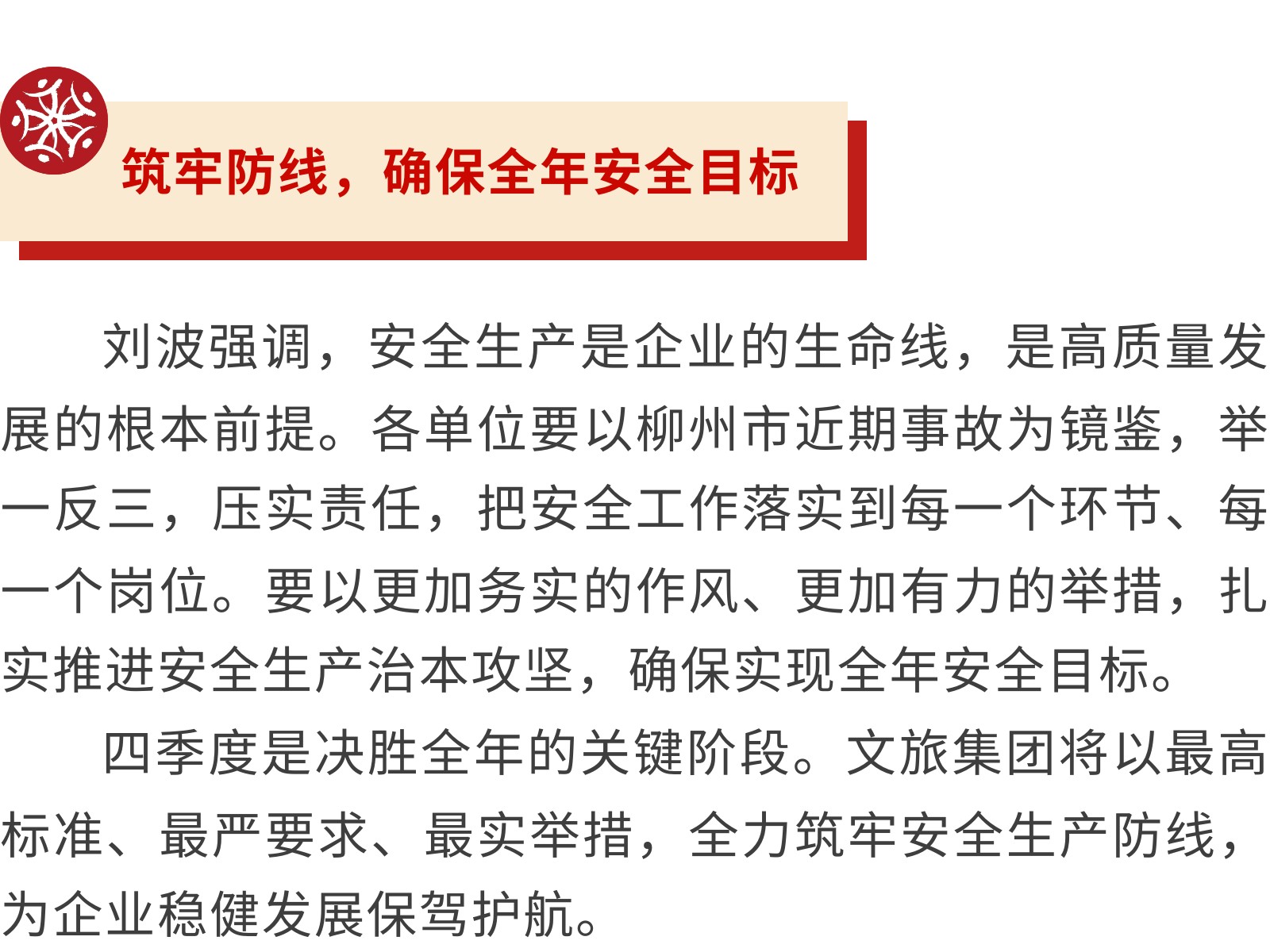 【壓實責任 筑牢防線】文旅集團全面部署2025年第四季度安全生產(chǎn)工作 發(fā)布時間:2025年10月24日 10時來源:本站原創(chuàng)瀏覽:63 人次