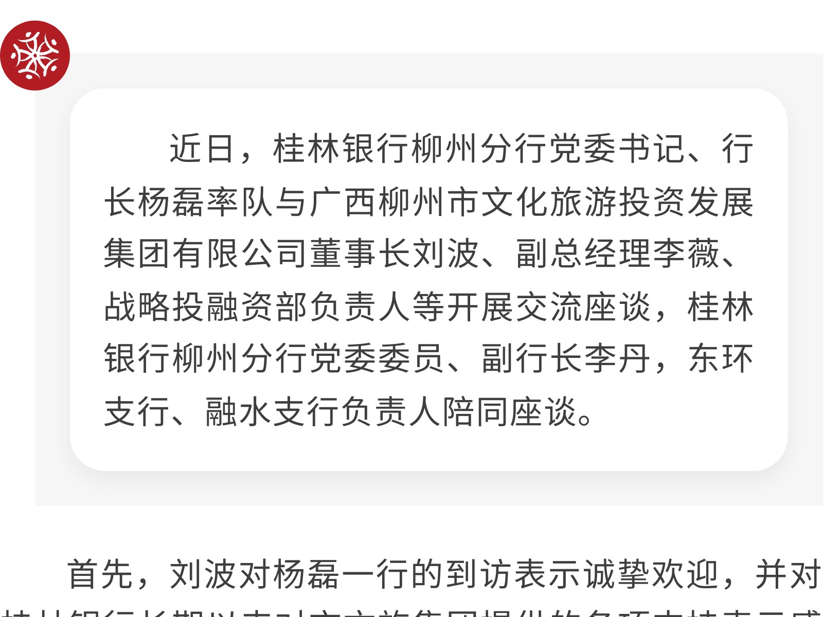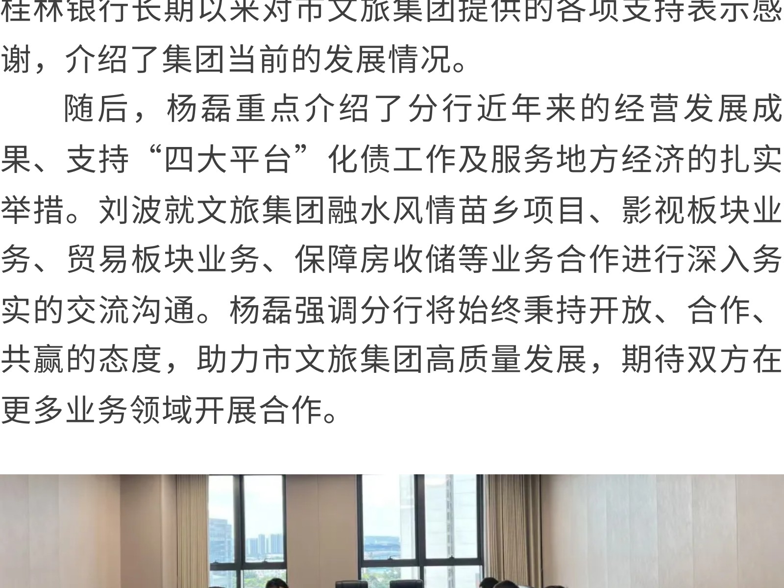 桂林銀行柳州分行到市文旅集團(tuán)開(kāi)展交流座談 發(fā)布時(shí)間:2025年11月28日 09時(shí)來(lái)源:本站原創(chuàng)瀏覽:47 人次