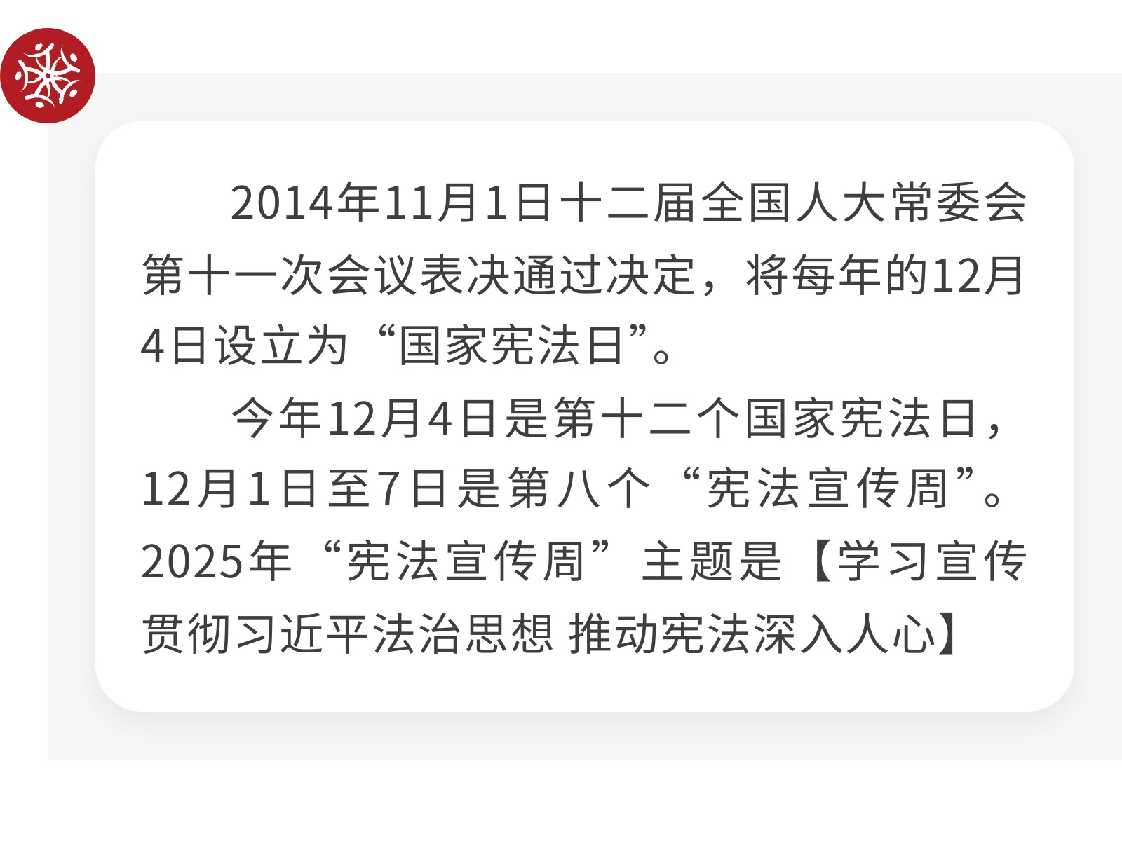 【憲法宣傳周】弘揚(yáng)憲法精神,守護(hù)法治根基。 發(fā)布時(shí)間:2025年12月08日 10時(shí)來源:本站原創(chuàng)瀏覽:40 人次