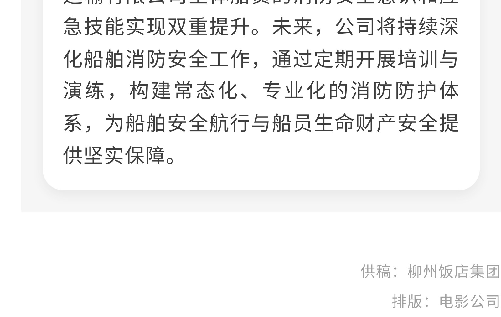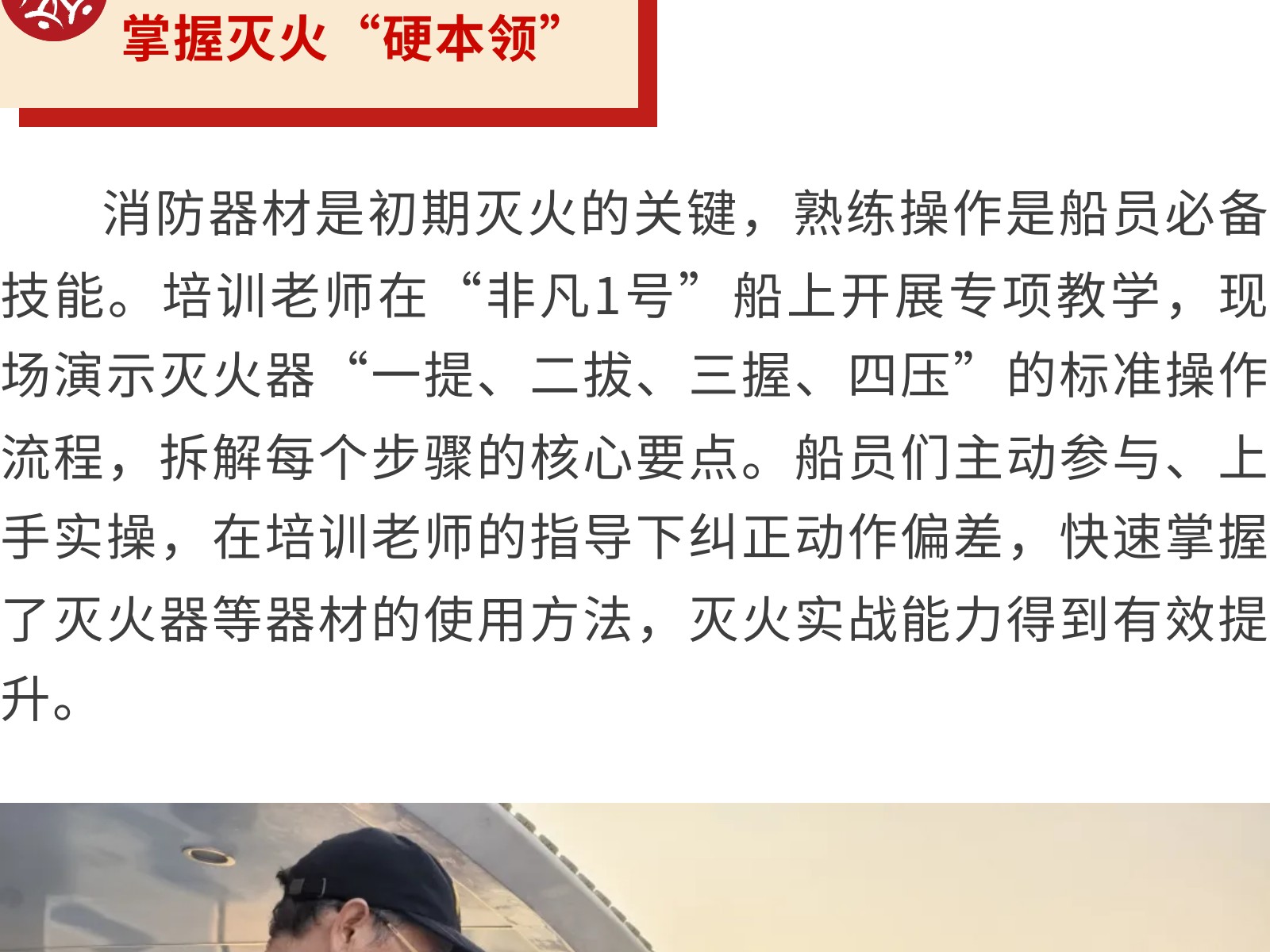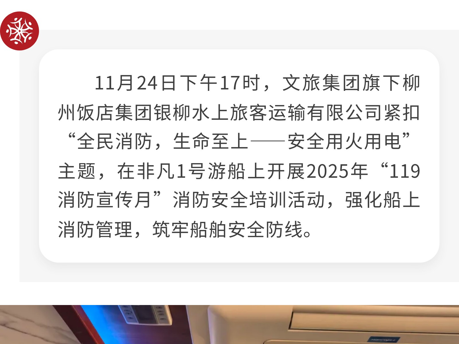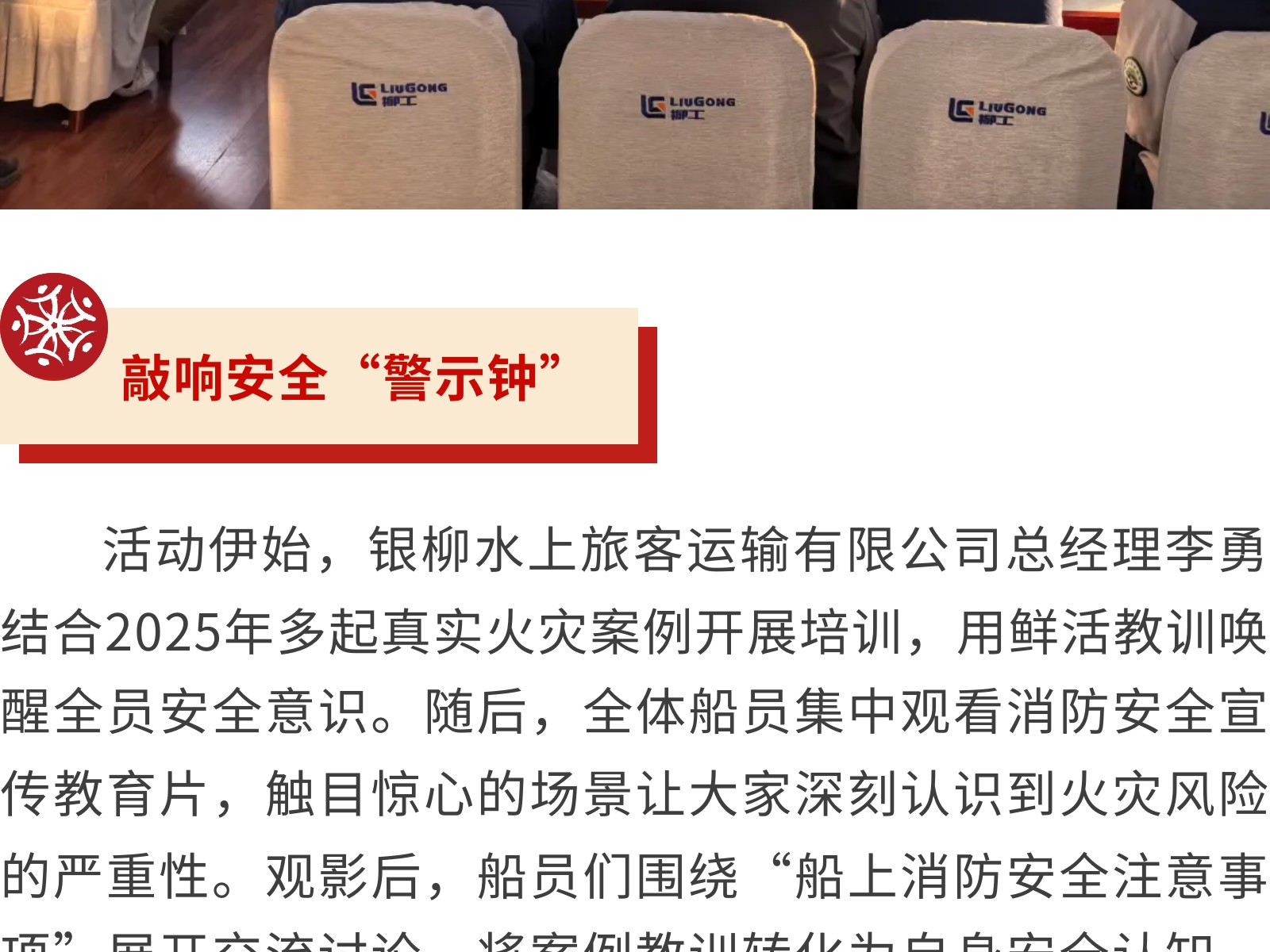 【強化船上消防,守護航行安全】銀柳水上旅客運輸有限公司開展消防安全培訓(xùn)活動 發(fā)布時間:2025年12月09日 10時來源:本站原創(chuàng)瀏覽:42 人次