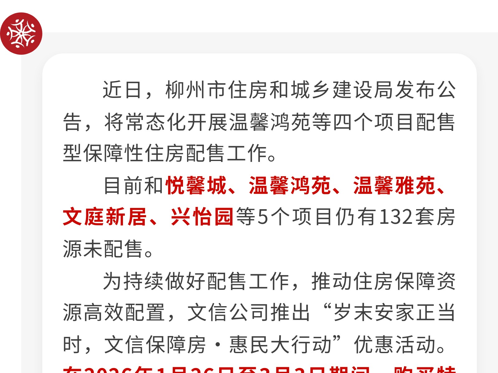 比回南天更猛!今起,申請柳州這些保障房,有2萬元補貼! 發(fā)布時間:2026年01月28日 13時來源:本站原創(chuàng)瀏覽:39 人次