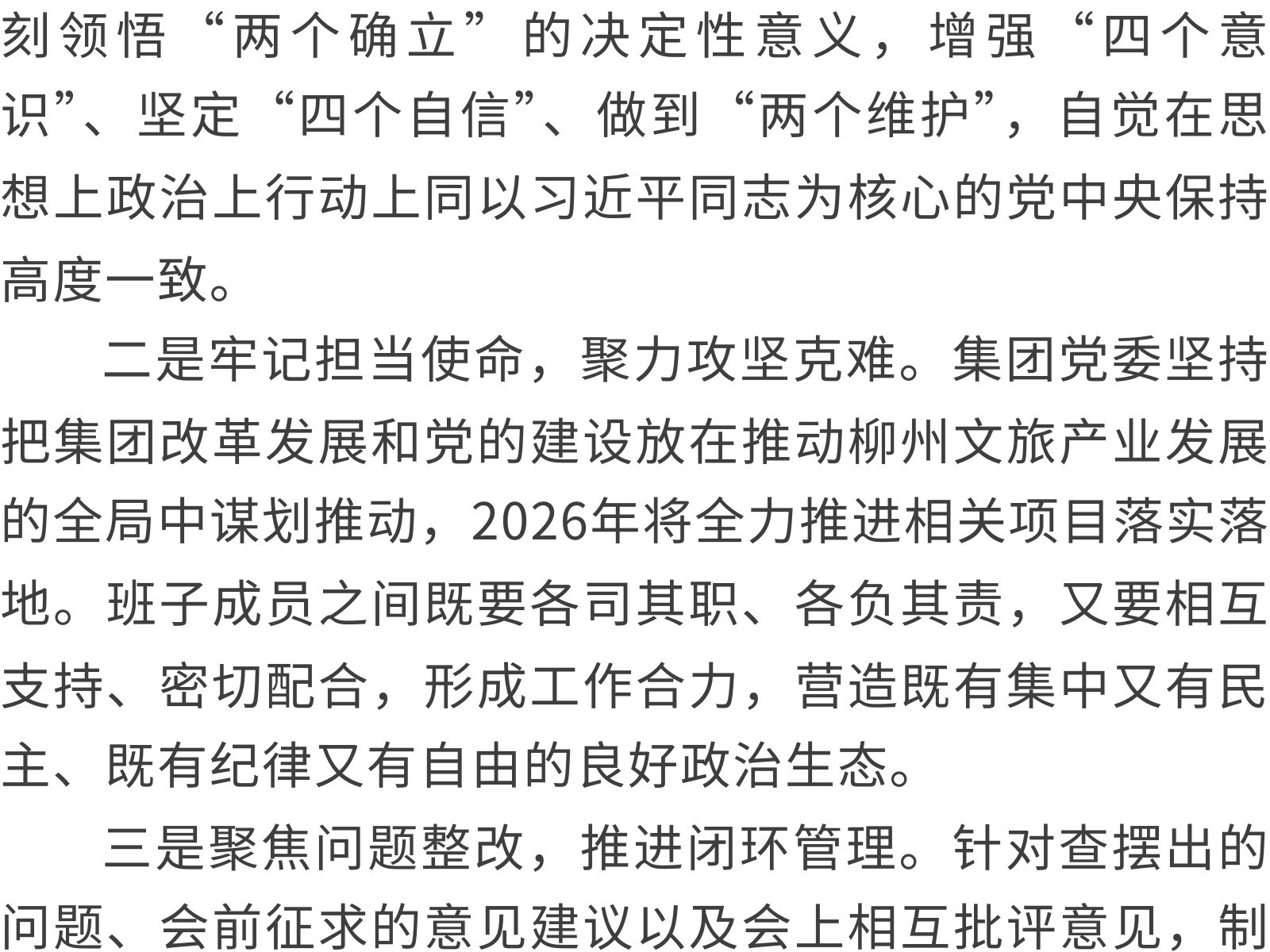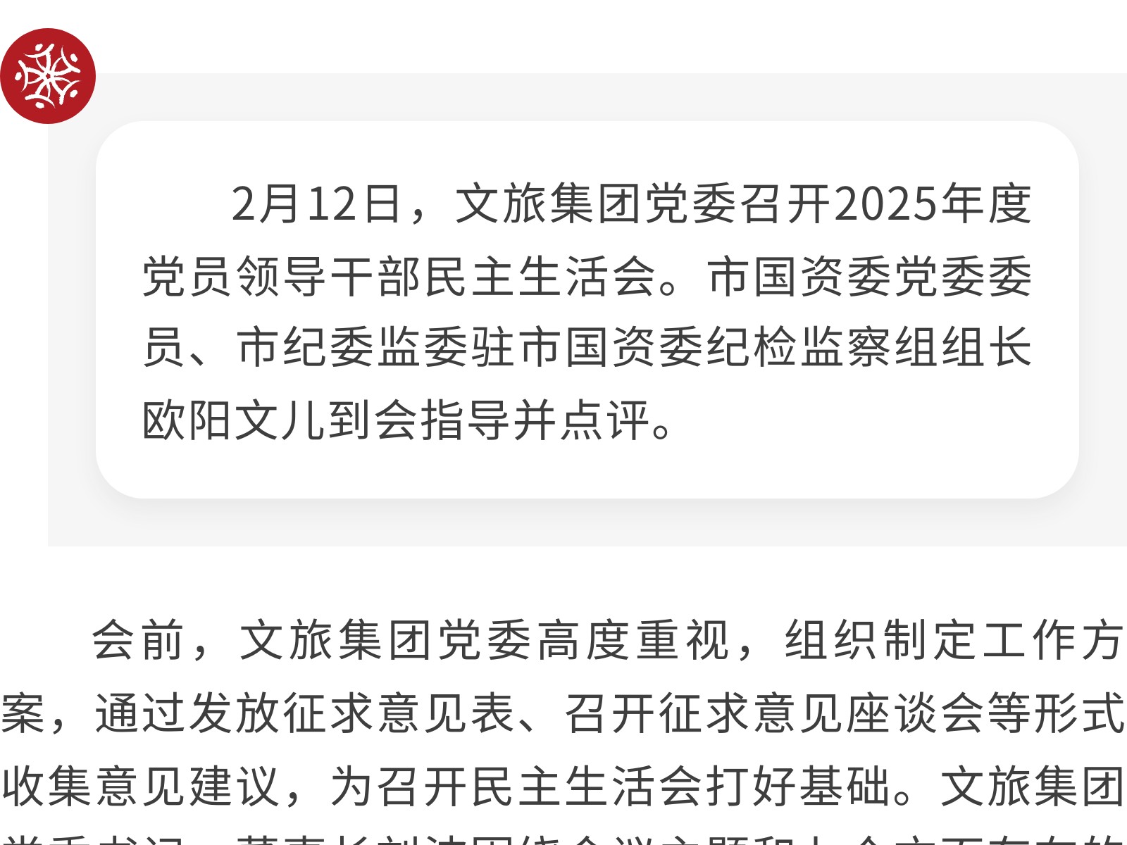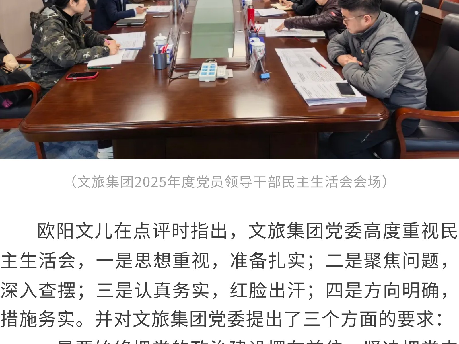 【黨建引領(lǐng)】文旅集團(tuán)黨委召開(kāi)2025年度黨員領(lǐng)導(dǎo)干部民主生活會(huì) 發(fā)布時(shí)間:2026年02月12日 13時(shí)來(lái)源:本站原創(chuàng)瀏覽:13 人次